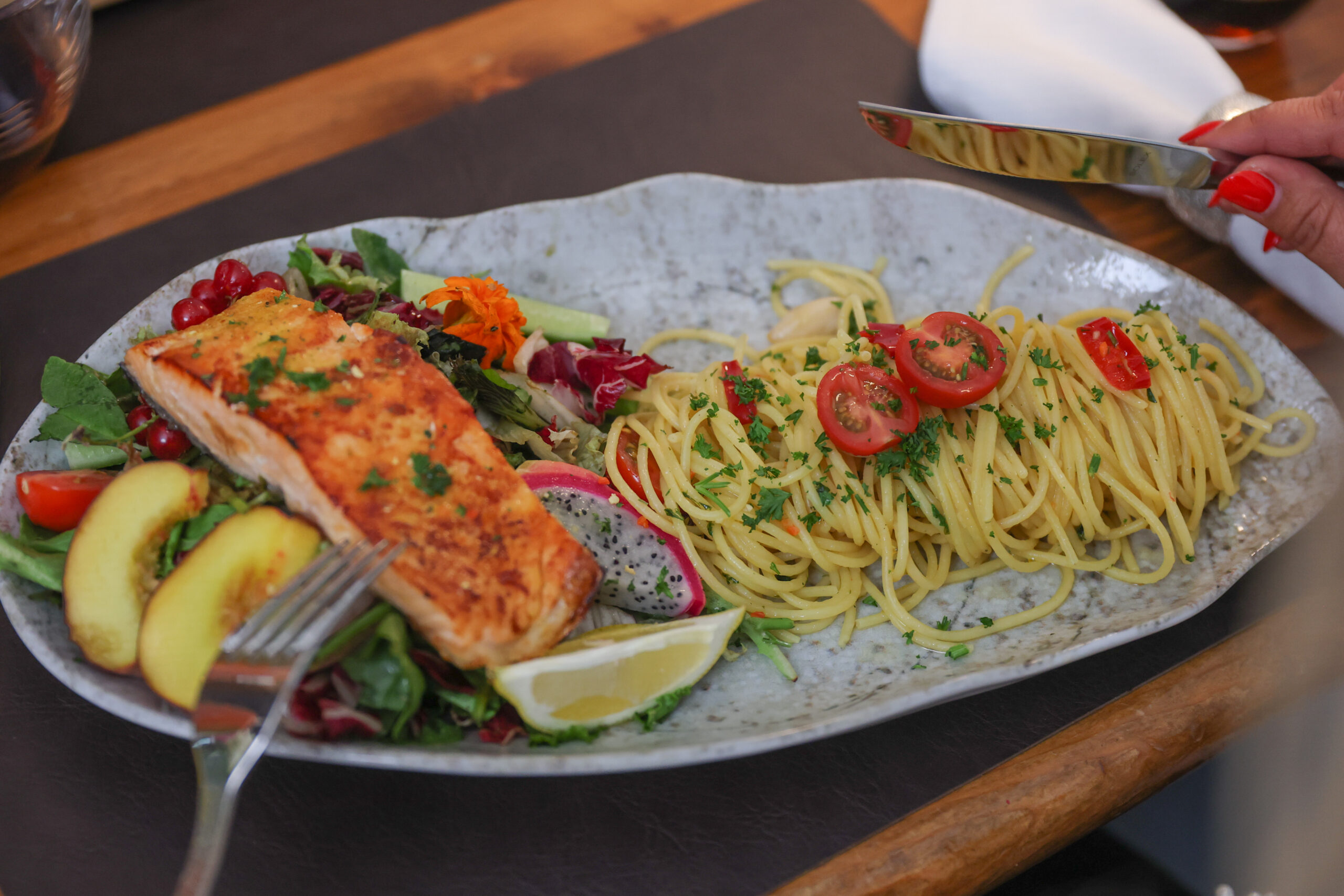 Unser saftiges Lachsfilet wird schonend zubereitet, sodass es innen zart und außen knusprig bleibt.
